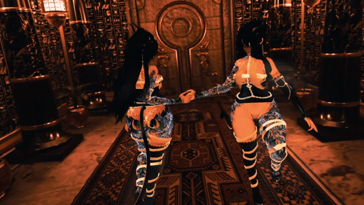 Features; Arm chains, Chest chain, Chest straps, Corset, Heels, Horns, Leg straps, Panties, Scales, Smoke, Tails, Top and Veil.